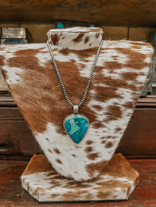 Genuine 4.5mm-20" Necklace W/ Chrysocolla Pendant