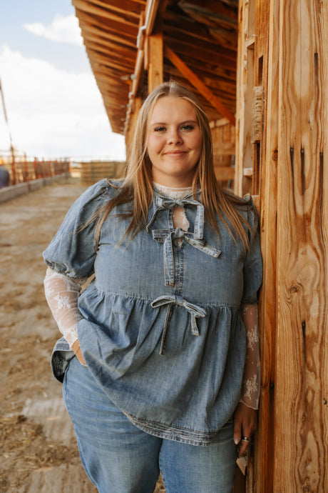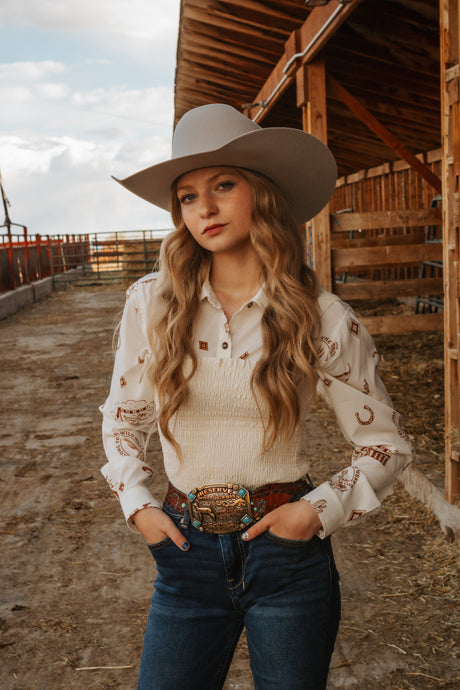 Long Sleeve V-neck Ruffle Detail Crop Blouse