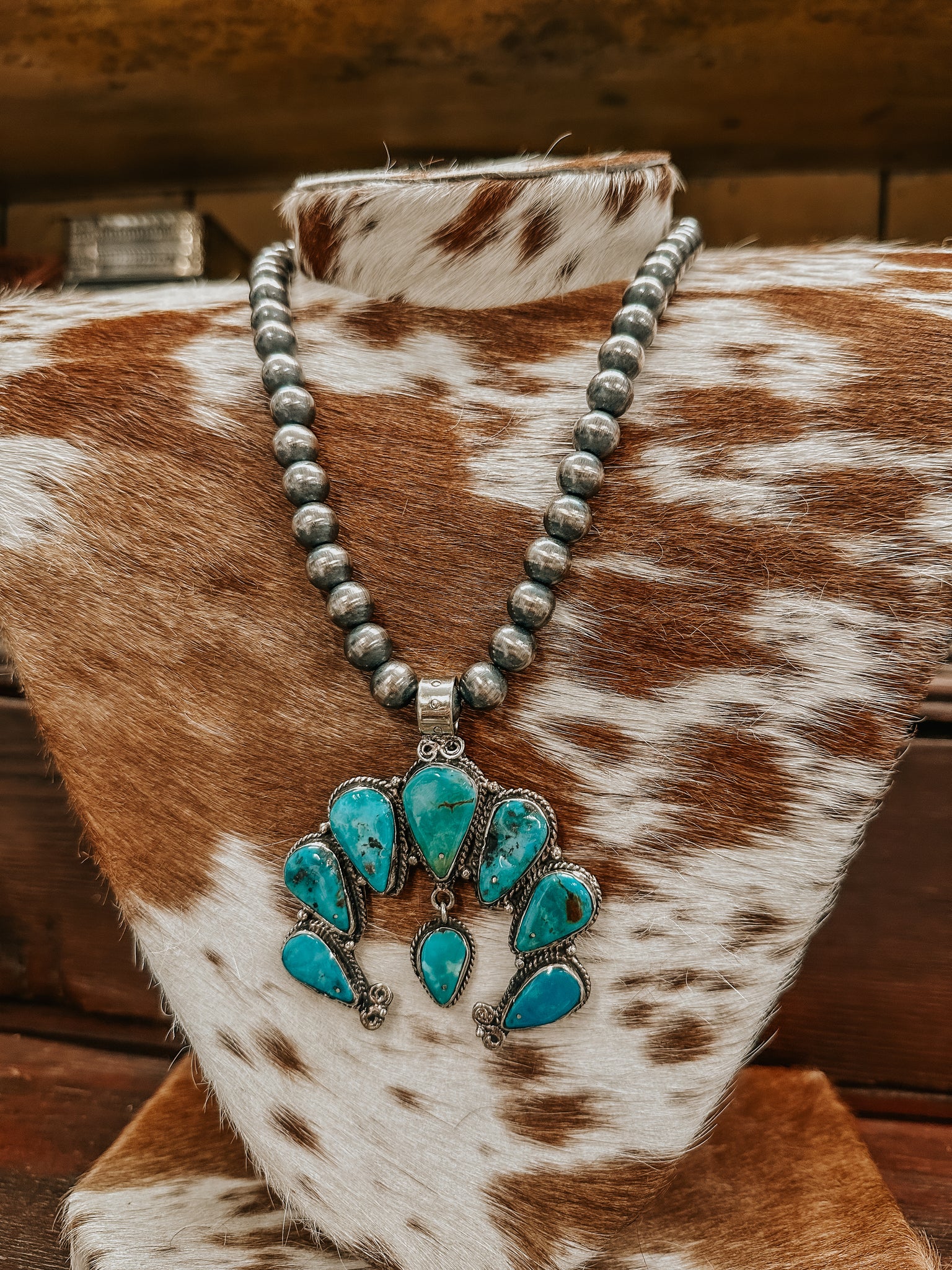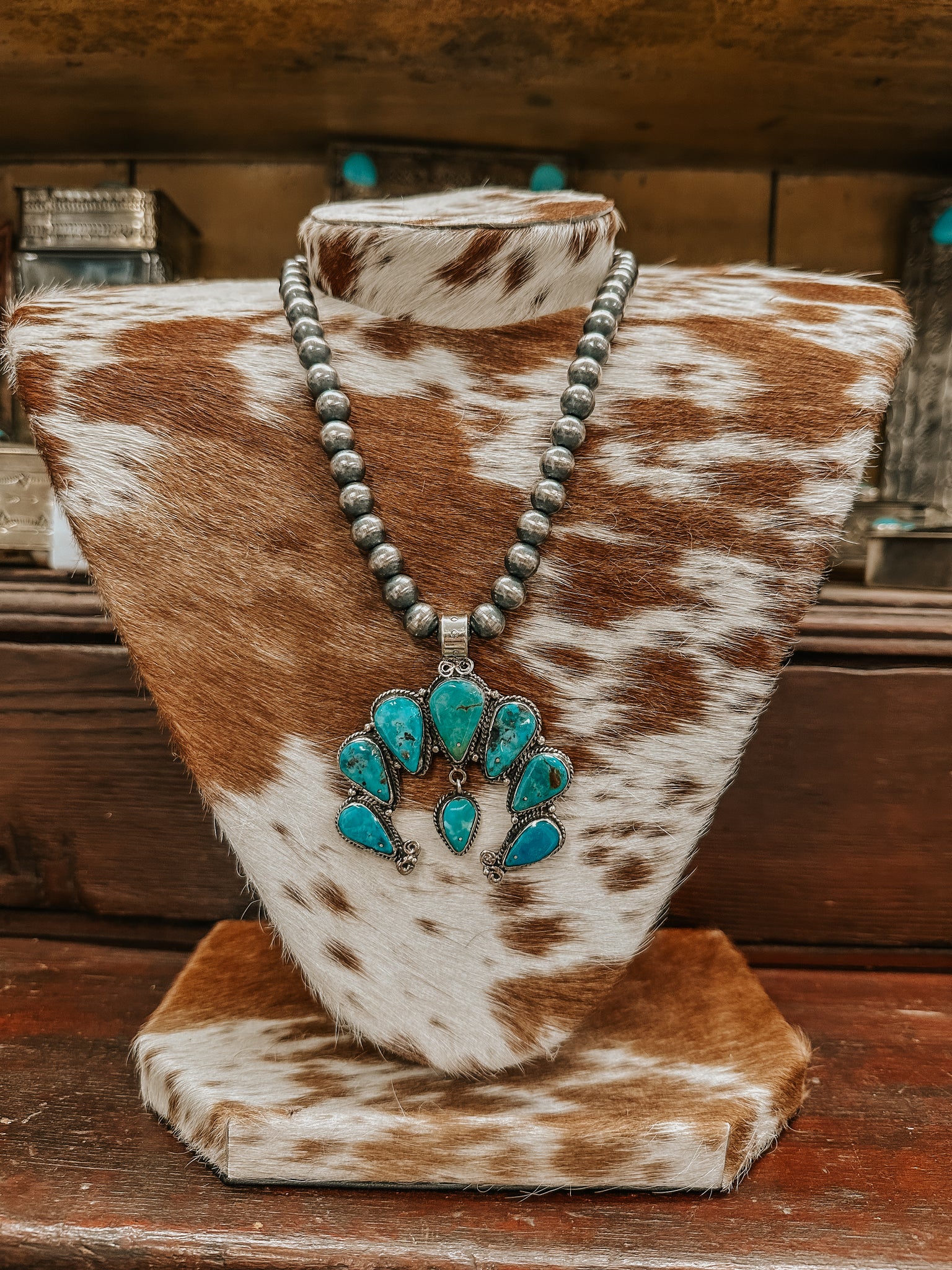10mm- 20" Sterling Silver Beads W/ Turquoise Pendant