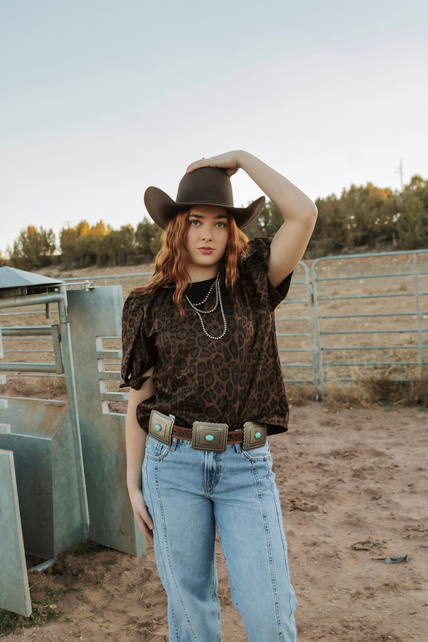cheetah print top with tie sleeves
