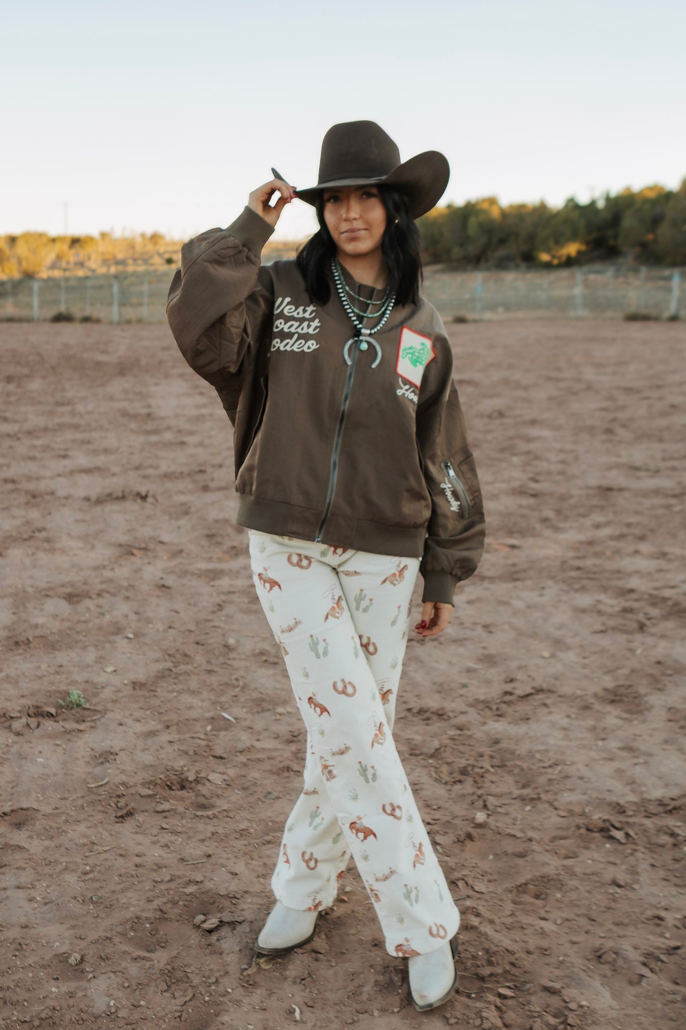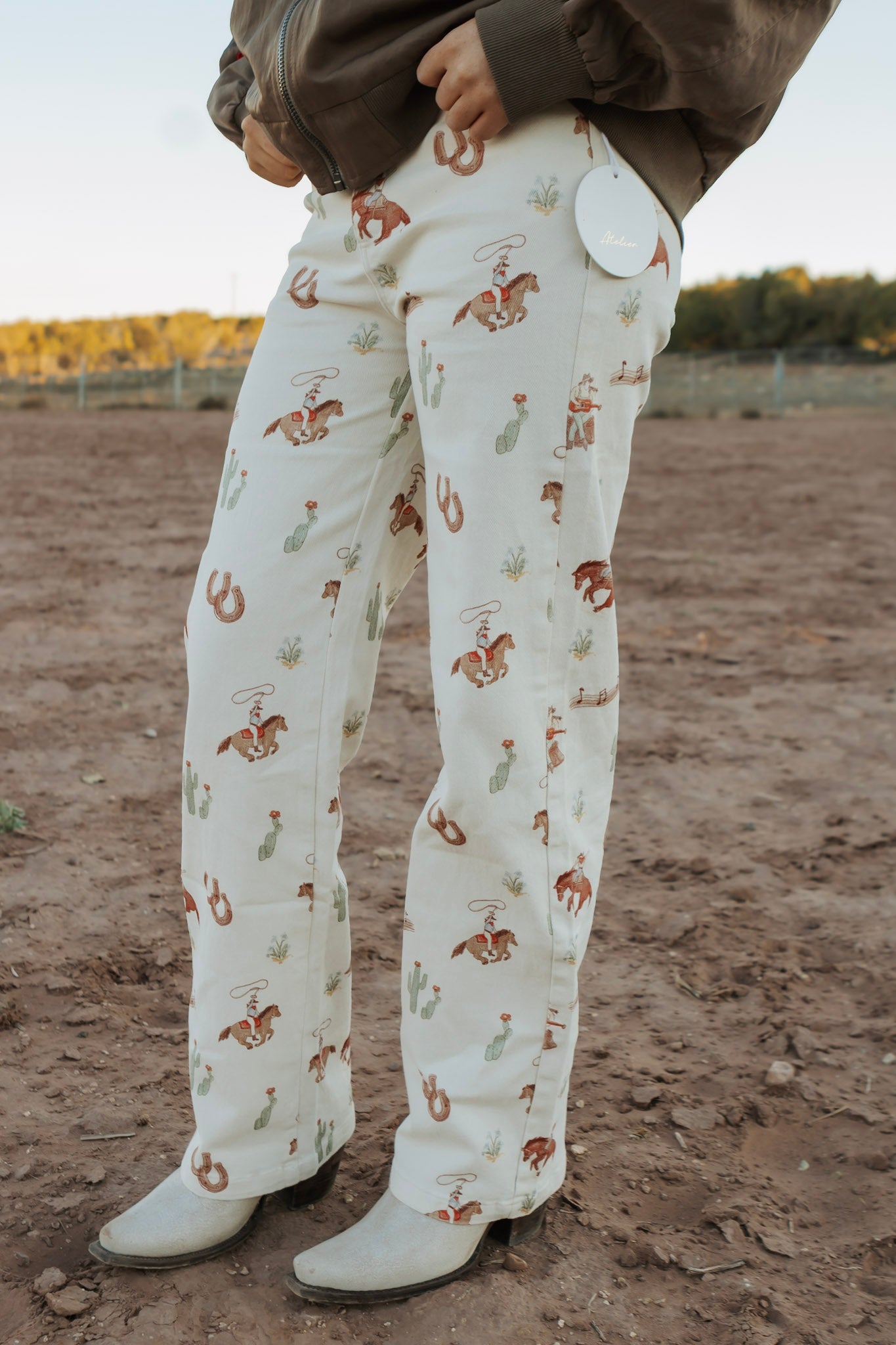 Cream Western Printed Pants