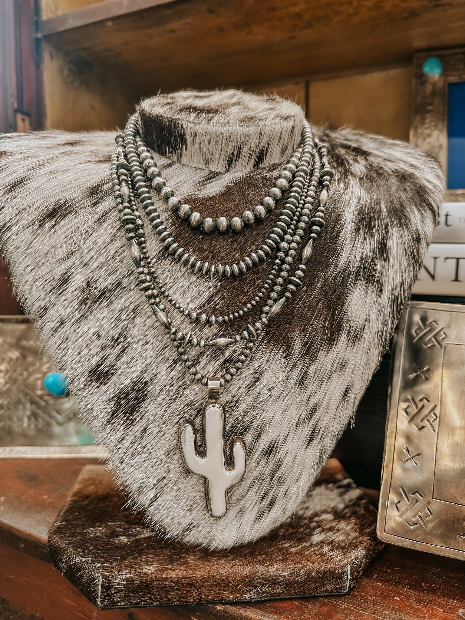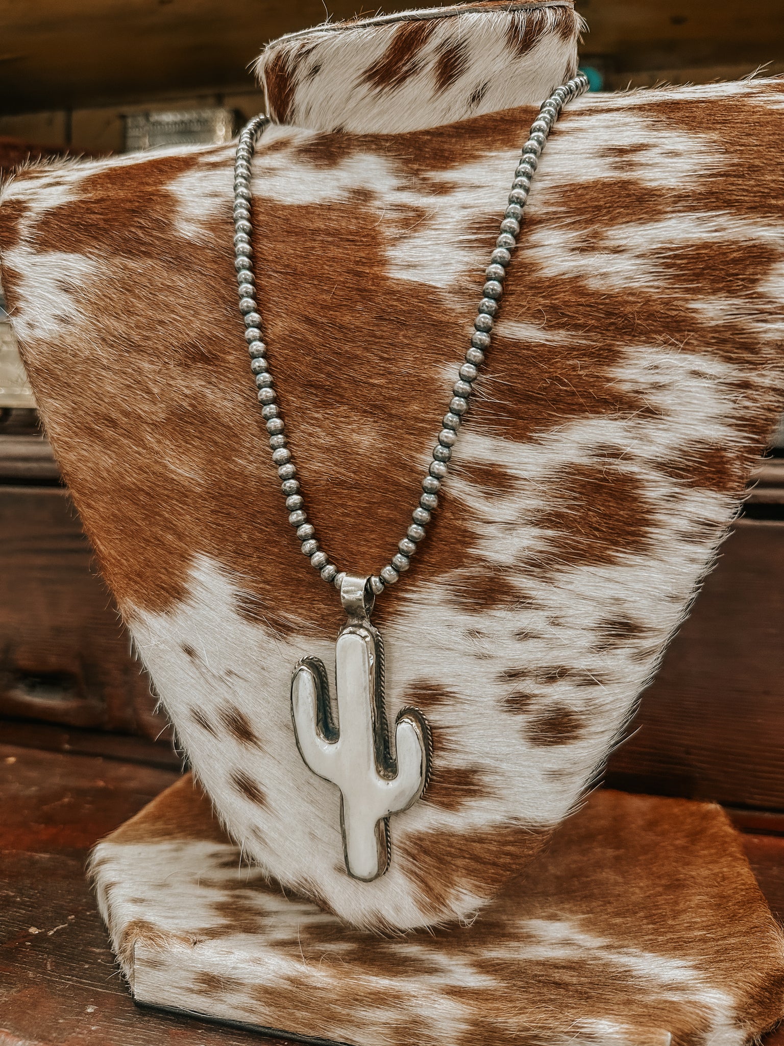 Genuine Navajo 24" 5mm White Cactus Pedant Necklace