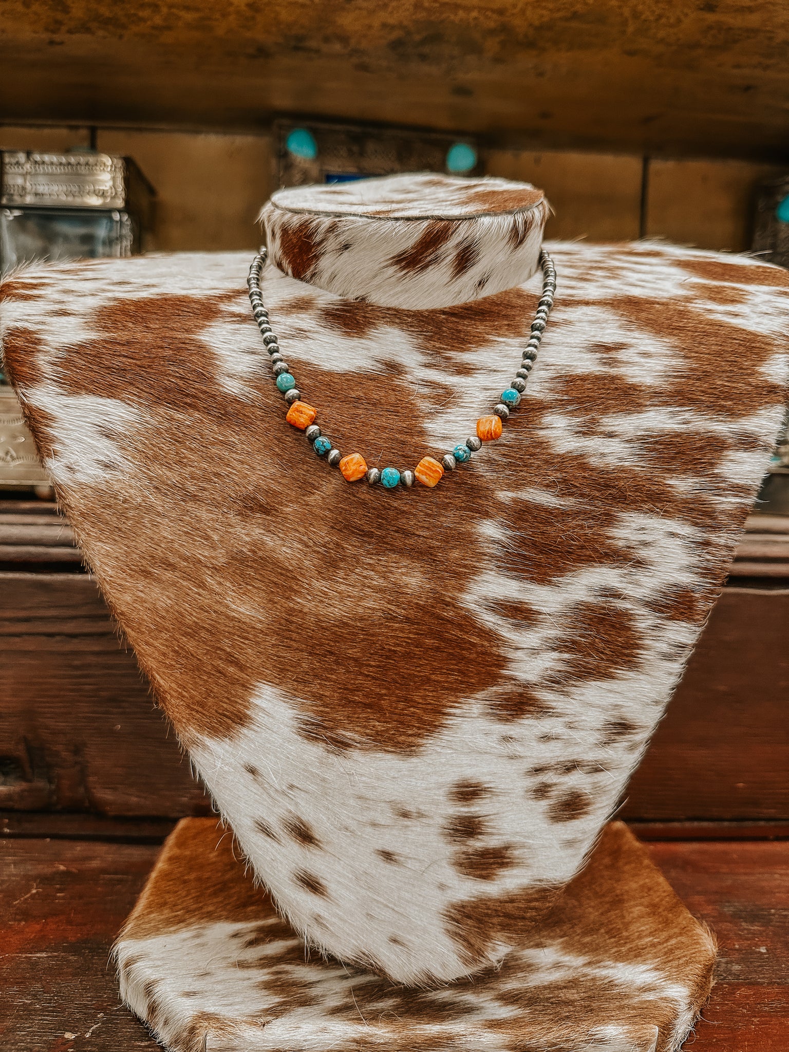 Genuine Navajo Turquoise and Orange 18" Necklace