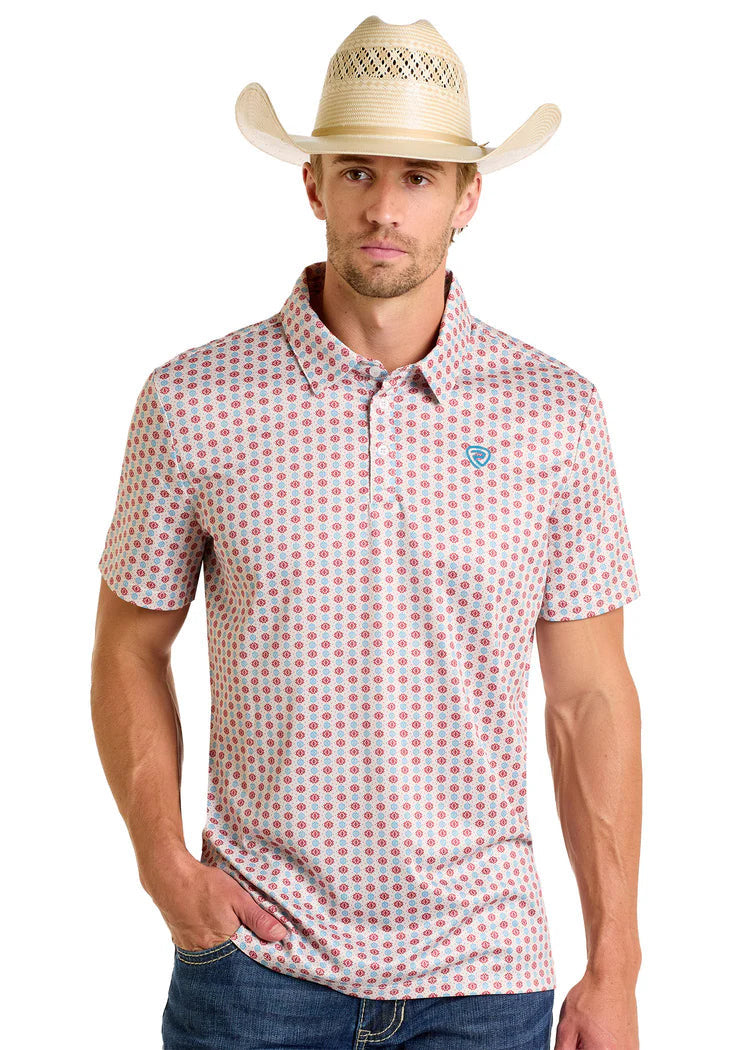 Mens geo printed polo