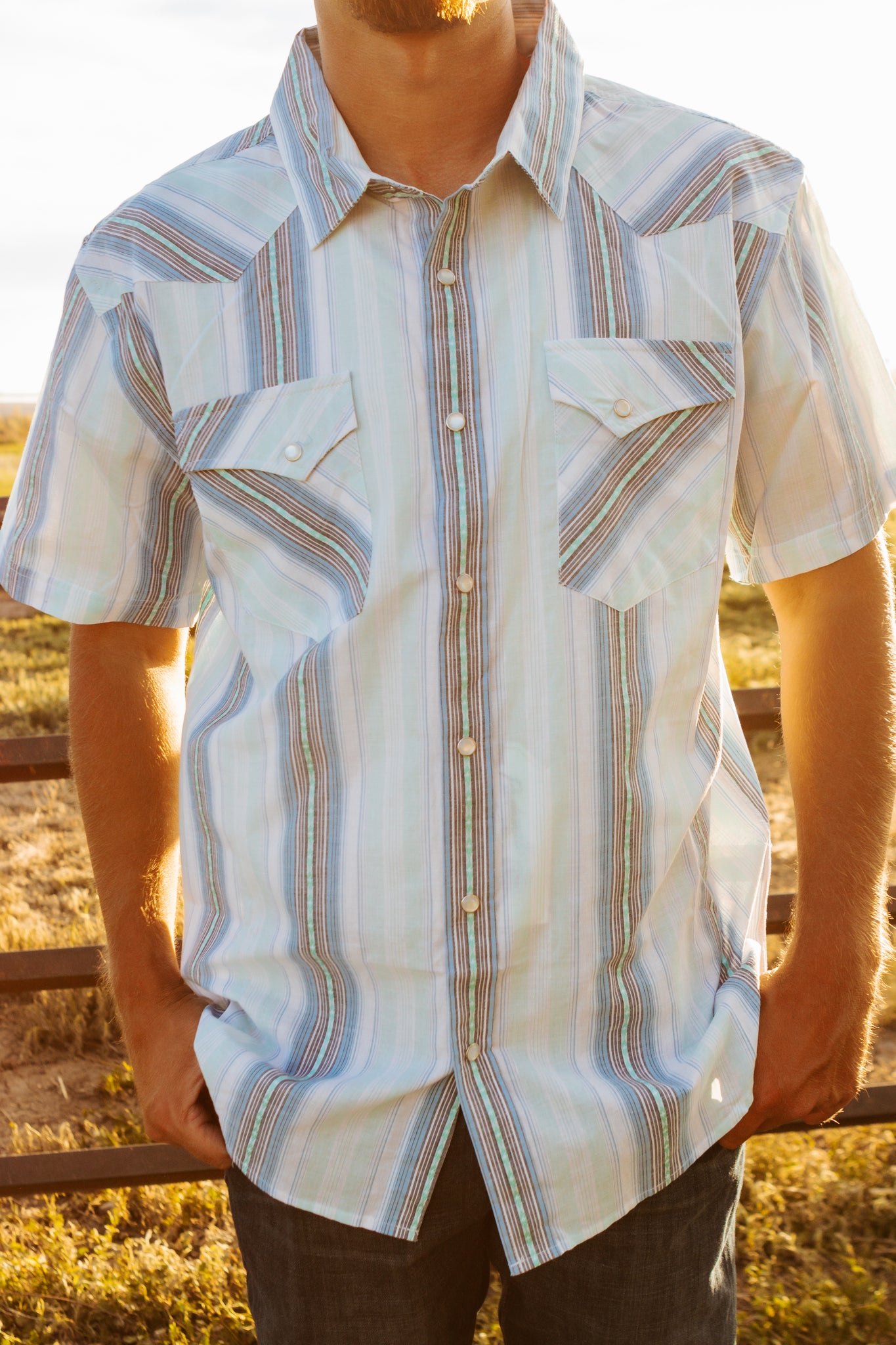 Men's Sky Blue Pearl Snap