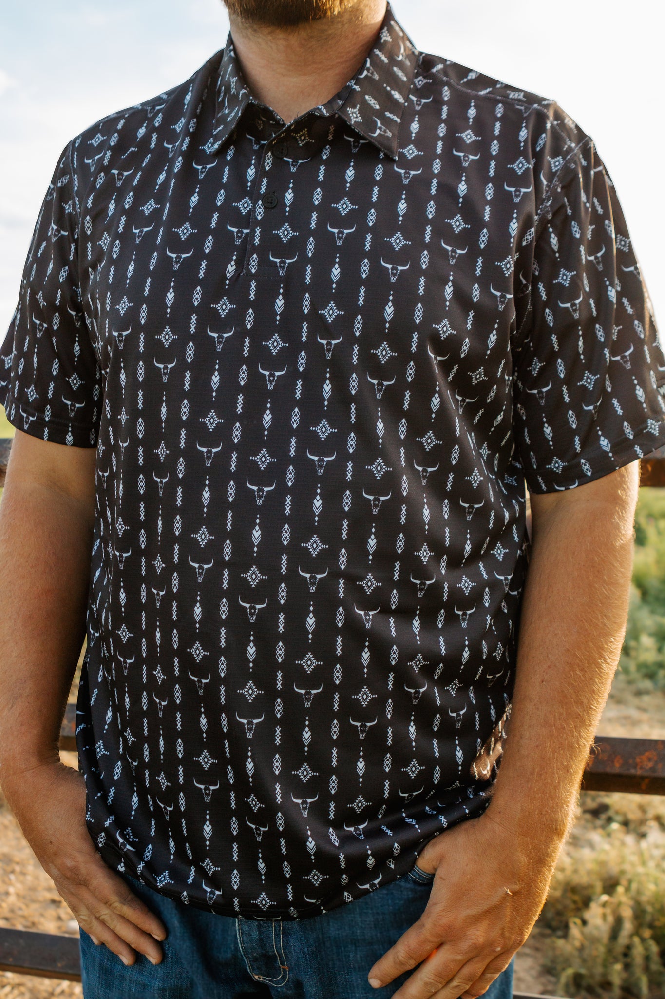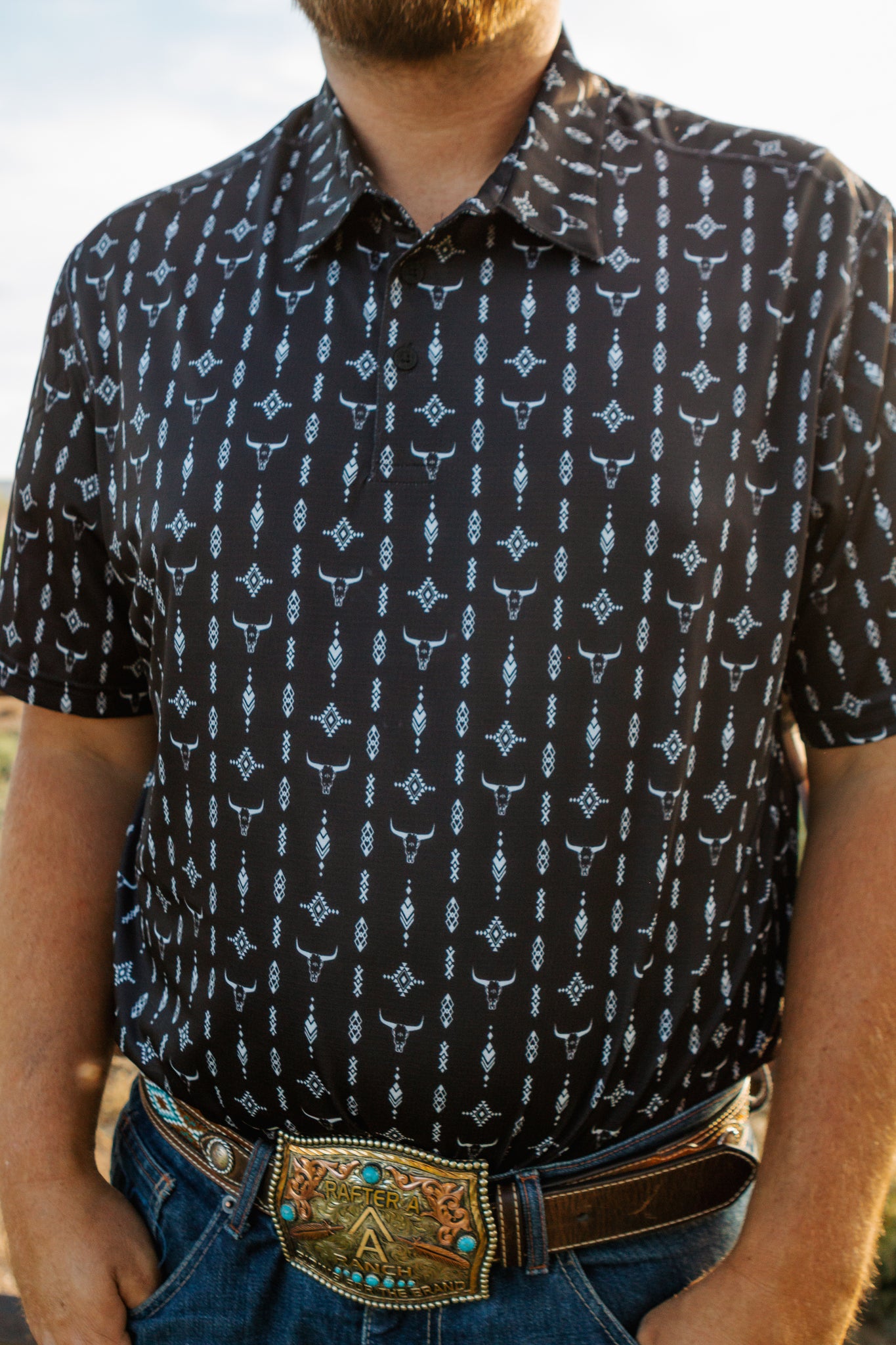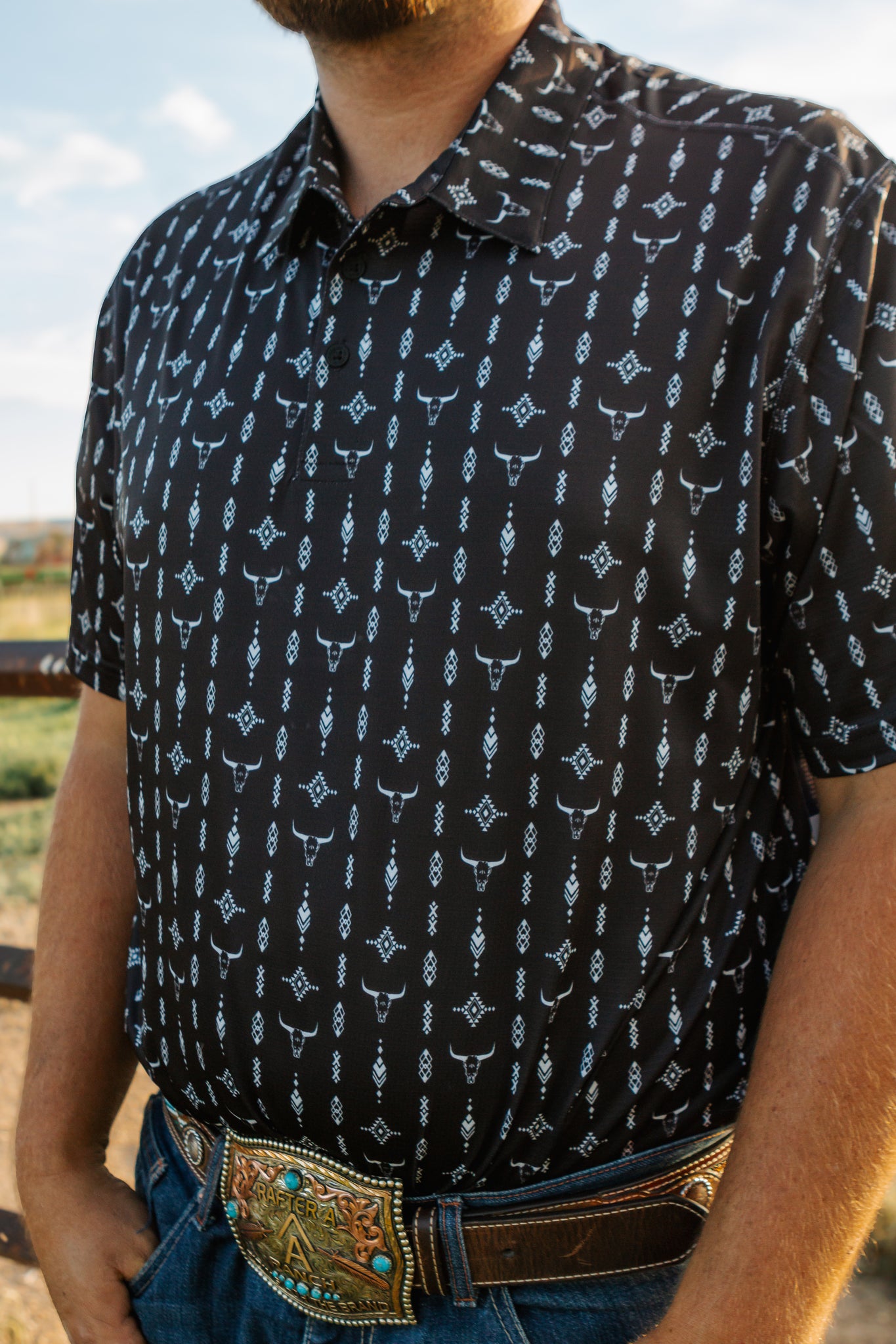 Men's Wrangler Black Longhorn Polo