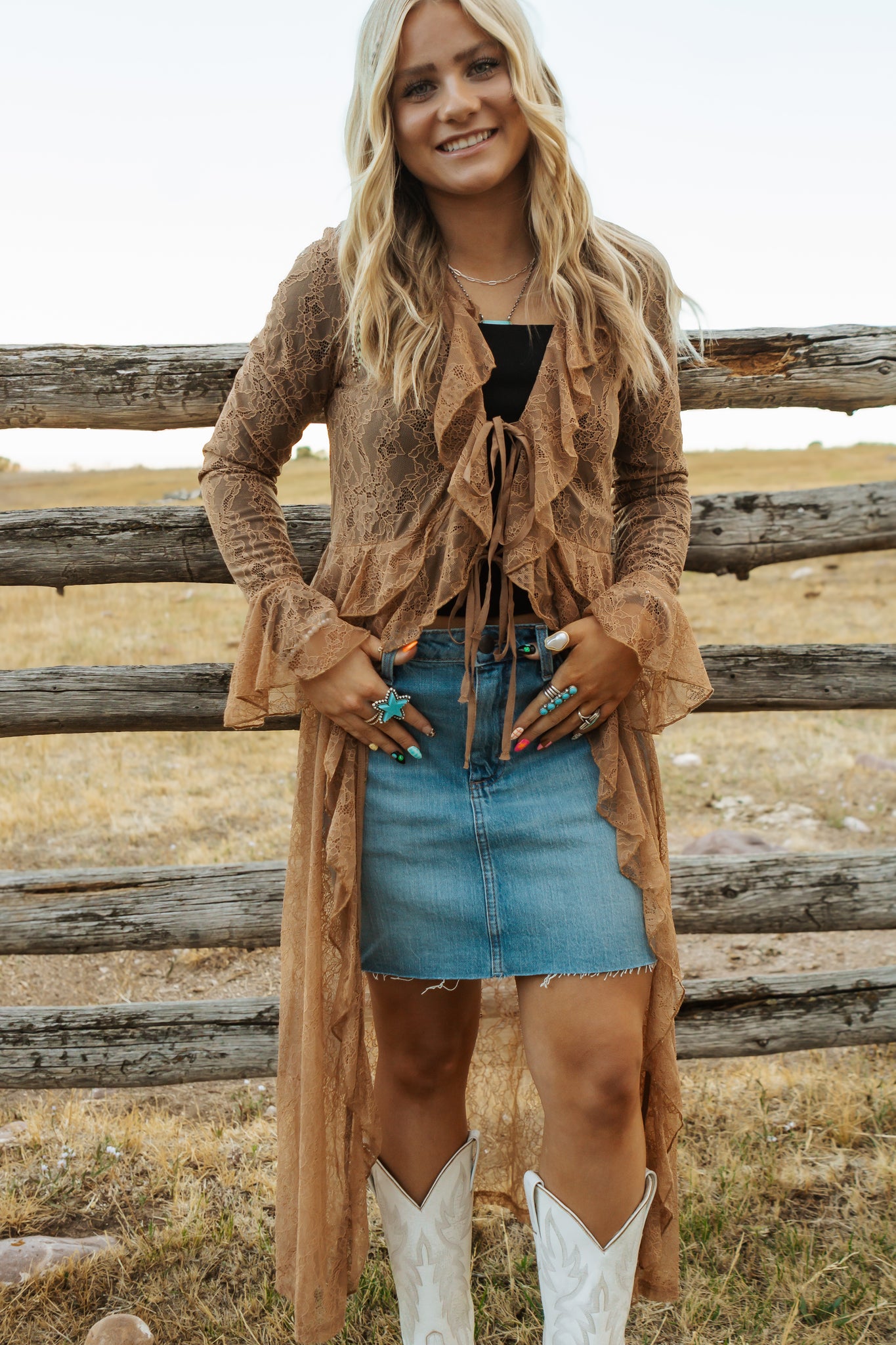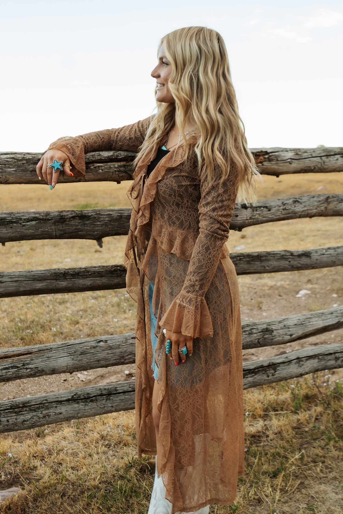 Sheer Lace Ruffle Duster