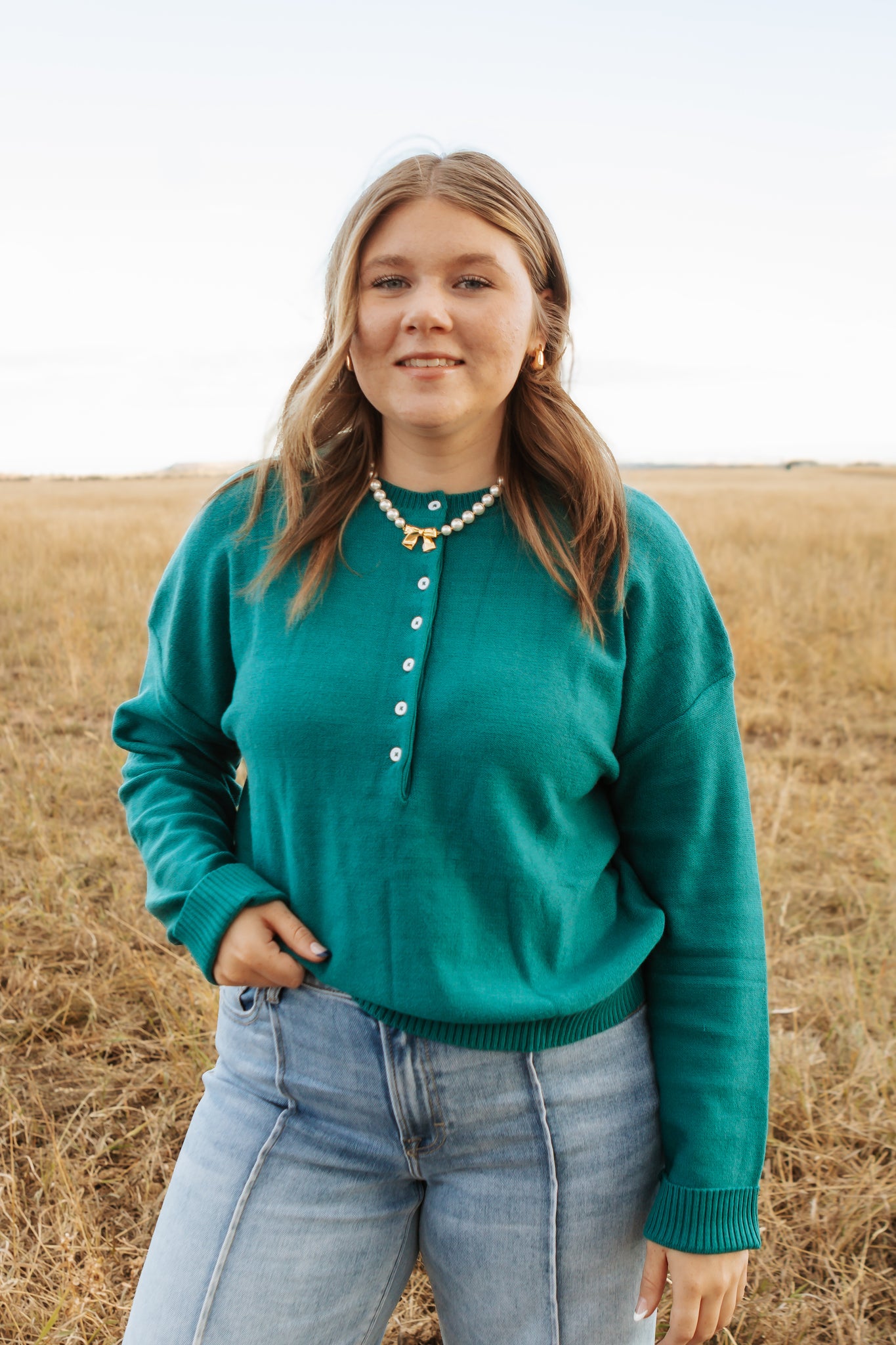 Teal Button Sweater Top